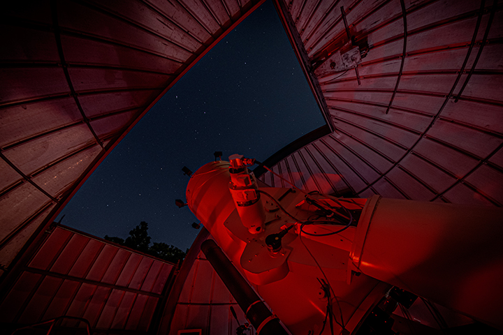 The Three College Observatory, located at a dark-sky location in central North Carolina, contains a 0.81-meter reflecting telescope, one of the largest in the southeastern United States, and is open to the public on selected Public Nights (see calendar below).